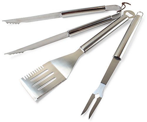 - HEAVY DUTY PROFESSIONAL GRADE – Our 3 Piece Barbecue Tools Set is made from the most durable stainless steel available giving you a long-lasting, professional quality set you can use for years.