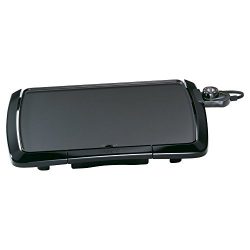 Convenient 10-1/2 by 16-inch cooking surface is great for any meal. Cool touch surrounds the base on the front and both sides. Built in slope and backstop ledge for