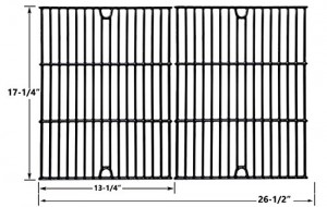 Dimensions : 17-1/4″ x 13-1/4″ Each, 17-1/4″ x 26-1/2″ Total Material : Porcelain Cast Iron Please Double-check The Measurements To Verify You Are Ordering Correctly Product Features Fits Charbroil