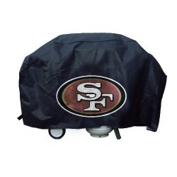 NFL San Francisco 49ers Deluxe Grill Cover Product Features Measures 68-inches Wide x 21-inches Deep x 35-inches High Durable Vinyl Construction; Lined with White Felt Hook-and-Loop Velcro Closure Keeps