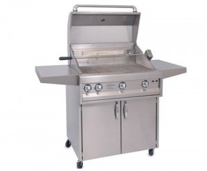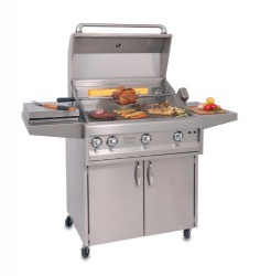 Artisan Stainless Steel Cart for 32-inch grill. Product Features Includes slide-out tray that holds up to 20-pound Storage center with double access doors Stainless steel construction Optional shelf-mount side