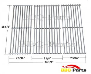 bbq-parts 7528 BBQ Stainless Steel Wire Cooking Grid, Set of 2. Dimensions: 12 23/32″ x 19 1/2″ each, or total 25 7/16″ x 19 1/2″; Material: Stainless Steel. PLEASE