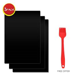 Grill Mat Non-stick BBQ Grill & Baking Mats with a Silicone Brush (Random Color ) – FDA-Approved, PFOA Free,Works on Gas, Charcoal, Electric Grill, – 13″ X 15.75″ PTFE