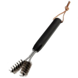 This specialty brush with angled bristles helps get in-between cast-iron grates. Also ideal for smaller grills. Stainless steel bristles are extra thick for a longer life. Ergonomic handle helps