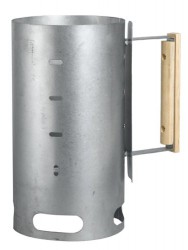 Highly Efficient Chimney Starter System Lights Charcoal Quickly and Evenly This Highly Efficient Chimney Starter has a hardwood handle with a metal shield to protect your hand. Holds enough