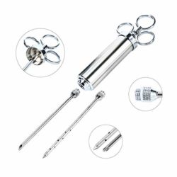 Meat Injector Stainless 2 oz Marinade Syringe & 3 Flavor Injection Needles for BBQ Turkey Chicken
