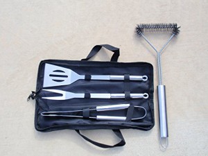 This bbq tool set features a durable 100% FDA-approved stainless steel construction and comes with a grill fork, tongs and a spatula. The handy carrying case makes this set