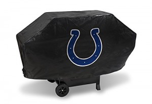 NFL Indianapolis Colts Deluxe Grill Cover Product Features Measures 68-inches Wide x 21-inches Deep x 35-inches High Durable Vinyl Construction; Lined with White Felt Hook-and-Loop Velcro Closure Keeps Cover