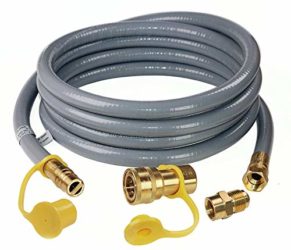 propane connectors hose Product Features NPT quick disconnect^1/2 inch ID hose with 1/2 inch female flare by 1/2 inch female 12 foot length^Connects any outdoor NG appliance to the
