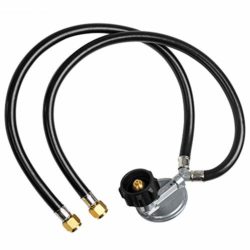 Product Features Double Stove Burner and 32″ Stainless Steel Griddle Plancha COMBO Gas hose:46-1/2” Long (roughly, fully stretched) ; The regulator is adjustable to 20 PSI (pounds per square