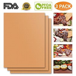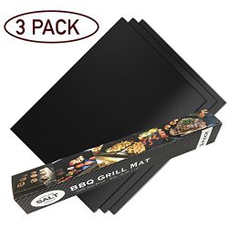 BBQ Grill Mat, ISUDA Set of 3 16″ X 13″ Fiberglass Fabric Nonstick Reusable Grilling Accessories -Works on Gas, Charcoal, Ovens, Electric Grill and More – Transform any outdoor