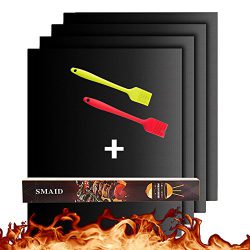 Grill Mat Non-stick BBQ Grill & Baking Mats with a Silicone Brush (Random Color ) – FDA-Approved, PFOA Free,Works on Gas, Charcoal, Electric Grill, – 13″ X 15.75″ PTFE