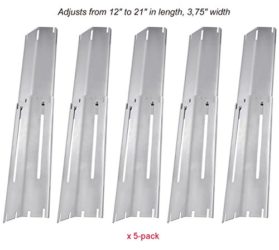 Package includes : 5-pack heat plates Dimensions: Extends from 11.75″ up to 21″L long, 3 5/8″ wide Material: Stainless Steel Universal Fit : The size is adjustable to fit