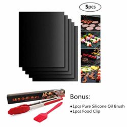 Zoemo BBQ Grill Mat for healthy and delicious food. Package Included: BBQ Grill Mat X 5 Silicone food clip X 1 Silicone brush X 1 Features: Washable Non-Stick Reusable Safety Attention: