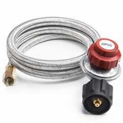 It features a 0-20 PSI adjustable high pressure propane regulator with 5ft hose and can be installed quickly and easily to propane tanks and cylinders. The red knob can