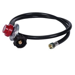 Product Specification: Type: High pressure Outlet Pressure: 0-20PSI Inlet Pressure: 25-250PSIG Flow Capacity:120000 BTU/Hour Certificate: CSA Length of rubber hose: 4 ft /48 inch /122 cm End Connector: 3/8″