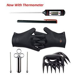 HIGHEST HEAT RESISTANT RATING 932F:Our oven gloves are made of the highest fire retardant gloves material available with Kevlar/Aramid/Nomex/Silicone and can withstand 932F. GREAT DIVERSITY:Use as Oven Mitts, BBQ