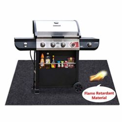 Absorbent Material with Flame Retardant The surface fabric of the Under Grill Mat is made of flame retardant material. but the backing material is not flame retardant material. This