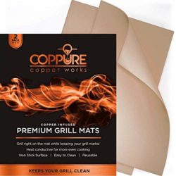 Coppure Premium Copper Grill Mats – Non Stick BBQ Grilling Mats [Set of 2] Reusable and Easy to Clean – Great for Grilling & Baking On Gas Grills, Charcoal, Smokers, Ovens and More – FDA Approved