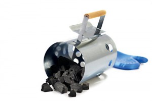 The chimney style charcoal starter lights charcoal without using starter fluid. It will hold up to 4-Pound of charcoal and your charcoal will be ready in 10 minutes when