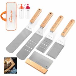 WHAT YOU WILL GET:2 Oversized Griddle Spatula: 14.45 x 2.81 inches2 Griddle Turner/Flipper: 11.64 x 2.73 inches2 Squeeze bottles: 7.42 x 2.03 inches, Volume: 10.5oz each1 Griddle Scraper: 6.64