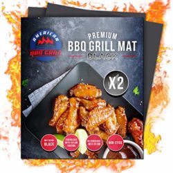 Premium Set of 2 Black Grill Mats by American BBQ Grill. Maximum heat resistant anti-detention mat liner. Doubles up as BBQ Trays and works perfectly with your other silicone