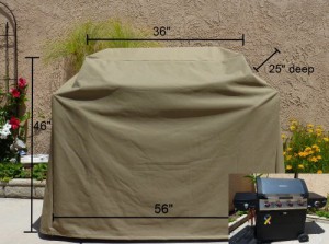 Full weather protection for BBQ Grill up to 56″ Long, for Cart style, Sand color Heavy gauge 600 Denier polyester fabric with PVC coated and water repellent treatment on