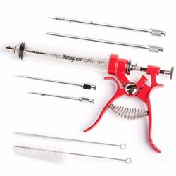 Meat injector marinade will be a perfect choice.It is strong,durable and able to pass flavor injector syringe into every bite of a meal. The meat needle are long enough