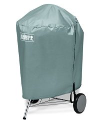 Weber charcoal Kettle grill value cover, fits 22″ Weber Kettle grills, durable all-weather fabric is water & UV resistant & breathable which helps protect your grill, Velcro straps tie
