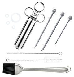 Meat Injector Kit with 2-oz Large Capacity Barrel and 3 Marinade Needles and BBQ Brush Stainless Steel Marinaters Flavor Injector with Handle BBQ Brush