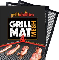 *Set of 4(2 black mesh mat,1 copper mesh mat and 1 black solid mat),15.75″ x 13″ mats made from heavy duty PTFE (PFOA Free). *Keeps even the smallest food