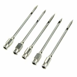 Description: It is a marinade injector needle for barbecue. Set of 5 stainless steel meat injector needle replacements. Perfect to tenderize and flavour the meat and turkey. Features: Made
