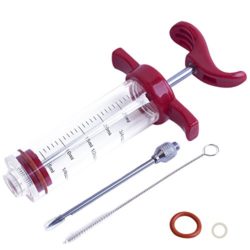 Cross Land Plastic Marinade Injector Syringe with Screw-on Meat Needle for BBQ Grill, 1-oz, Red with 2 Marinade Needles – 3 Extra O-Rings & 1 Cleaning Brush