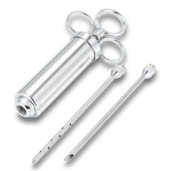 It is a marinade injector needle for barbecue. Perfect to tenderize and flavour the meat and turkey. Material: Stainless Steel Size: 3 inch Quantity: 5 pieces Needles Product Features