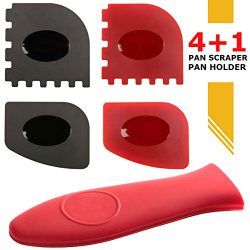 KITCHENACC Grill Pan Scraper & Pan Scrapers Set and Hot Handle Holder Durable 4 pack grill pan scraper set and 1 pack silicone hot handle holder are a must