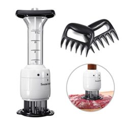 ——–We Are Brand Seller Delidge——– Weight:298g Size:22.5*8.3cm Model Number:K3359 The exclusive Sauces Injector 30 Stainless Steel Blade Meat Tenderizer or Tenderizer hammer for Pounder inclue Flavor Injector is THE