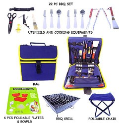 22 piece stainless steel tool set with canvas case. Product Features Barbecue set provides 22 grilling tools, utensils and cookware in a canvas storage case Includes barbecue fork, tongs