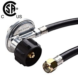 Ksun Low Pressure Gas Regulator with hose that have a 3/8″ female flare connection. Installs quickly and easily; Replaces damaged hoses and regulators on all CSA/CE certified LP gas