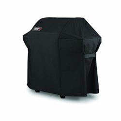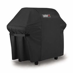 Weber 7106 grill cover , All-weather fabric is water resistant, UV resistant and breathable, protecting grills from the elements. Velcro straps added to secure to the grill, preventing cover
