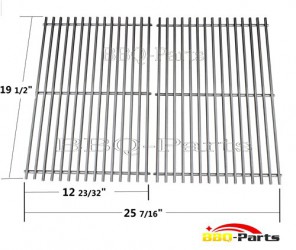 bbq-parts 7528 BBQ Stainless Steel Wire Cooking Grid, Set of 2. Dimensions: 12 23/32″ x 19 1/2″ each, or total 25 7/16″ x 19 1/2″; Material: Stainless Steel. PLEASE