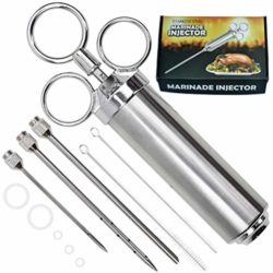 👍 Metal Marinade Needles For All Needs: BBQ injector set includes four needles to cover all of your marinade meat injector needs, two designed for turkey, steaks and chicken