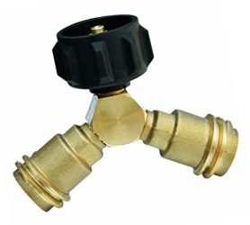 The propane gas splitter connects two regulators to one propane bottle. It allows you to easily run two cookers on one tank. So grilling and frying outdoors is easier.