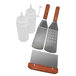 Blackstone Signature Griddle Accessories, Restaurant Grade, 2 Spatulas, 1 Chopper Scraper, 2 Bottles, FREE Recipe Book, 5 Piece Tool Kit for BBQ Grill, great for Flat Top Cooking, Camping and Tailgating