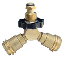 The propane gas splitter connects two regulators to one propane bottle. It allows you to easily run two cookers on one tank. So grilling and frying outdoors is easier.?