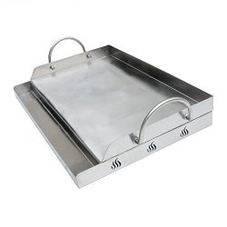 The griddle is built from 100% stainless steel, it features a reservoir on the front edge to catch grease a 1-1/2-inch raised edge allows for easy flipping-whether cooking eggs,