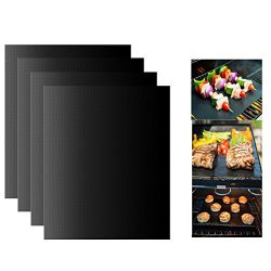 4 PCS set of Non-Stick Grill Mat is a great helpful cooking tool for home uses and camping BBQ. It prevents food from falling through grill slots, while also