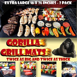 Our Gorilla Grill Mats are double the size of a standard mat. They are extra thick and extra strong. Use them to make breakfast, lunch, and dinner. Cook bacon,