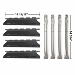 Replacement for BBQ Pro 146.23676310, 146.23770310 Dimension: – Burner covers: 14 15/16″ long, 3 13/16″ wide – Straight burner tubes: 14 3/4″ long, 1 dia – Carry over burner tubes: