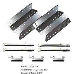 Product Features Made of stainless steel; Package includes 4 x heat plate, 4 x burner, 3 x adjustable crossover tube Dimensions: Burner 14 3/4″ x 1″, Heat Plate 14