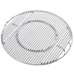 The Gourmet BBQ System Hinged Cooking Grate allows you to add more charcoal without removing the grate. The 12-inch plated grate insert allows for traditional grilling. Fits 22-1/2-inch Weber